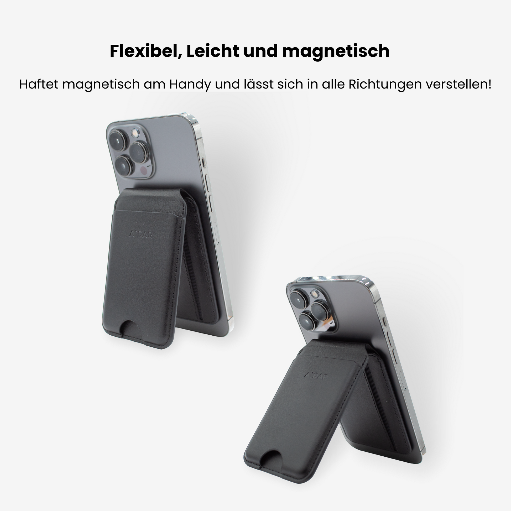 Dank der starken Magnetfunktion haftet das AdarWallet sicher an deinem Handy. Dies ermöglicht schnellen Zugriff auf deine Karten und hält sie stets griffbereit. Ideal für unterwegs, sorgt die Magnetbefestigung für eine nahtlose und bequeme Nutzung ohne zusätzliche Taschen.