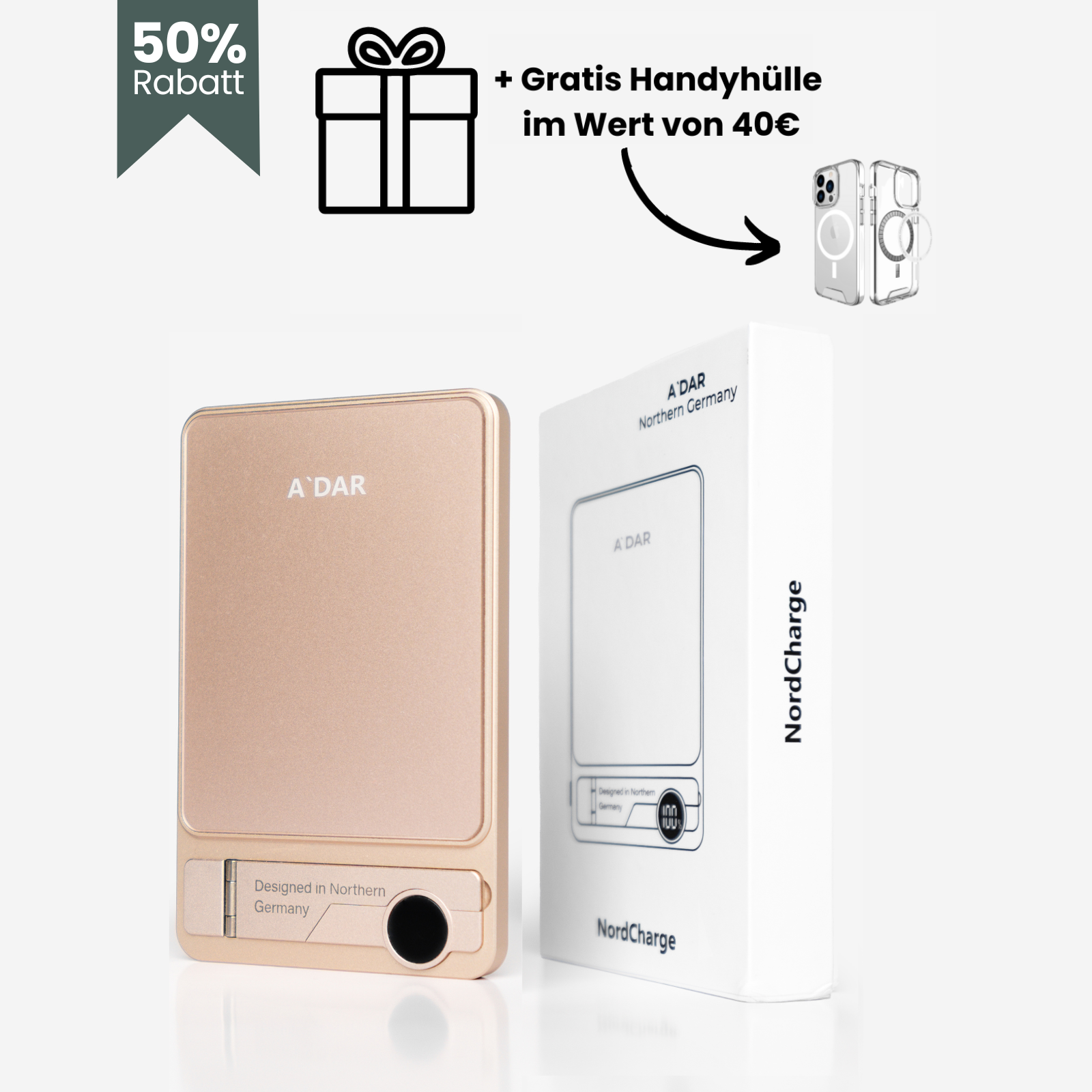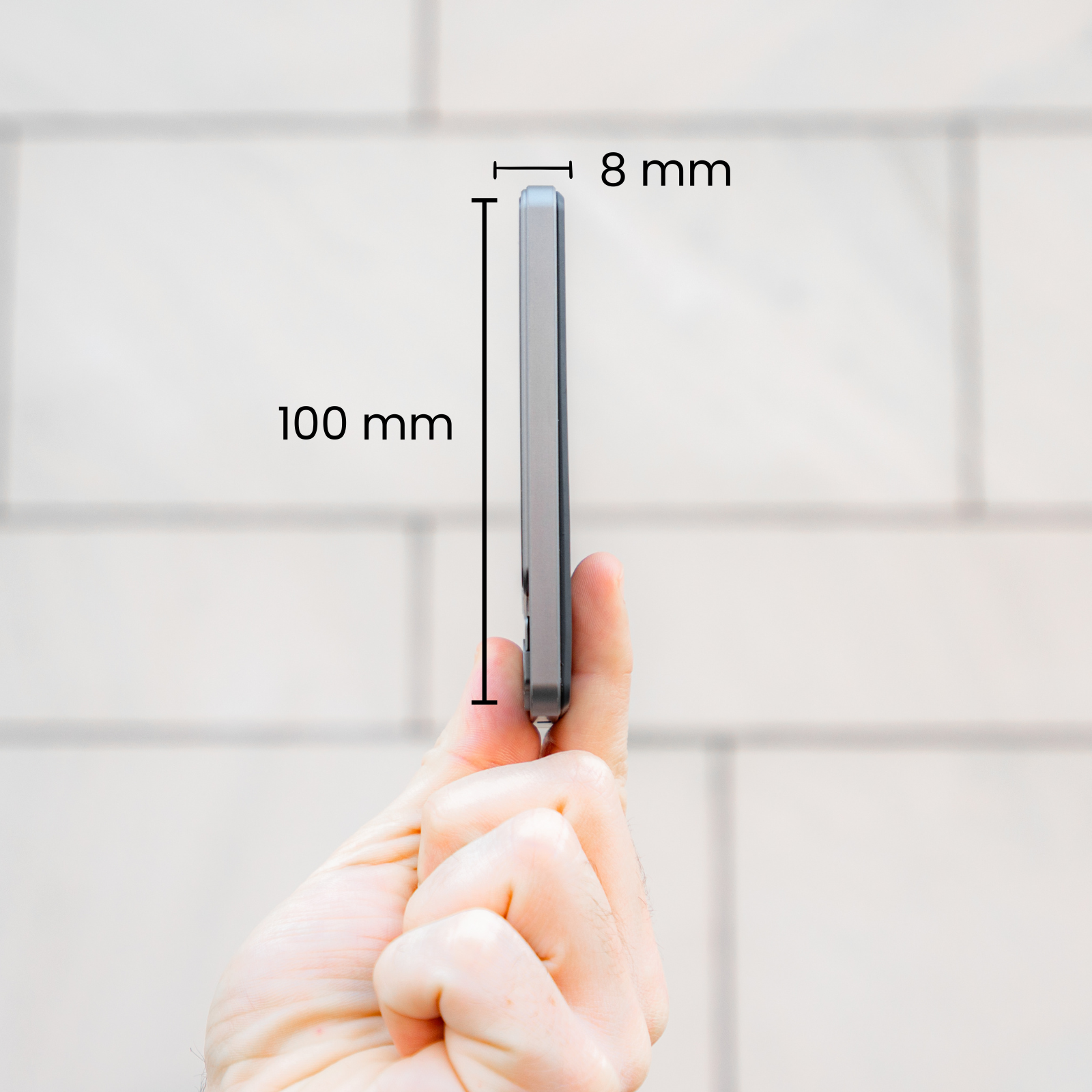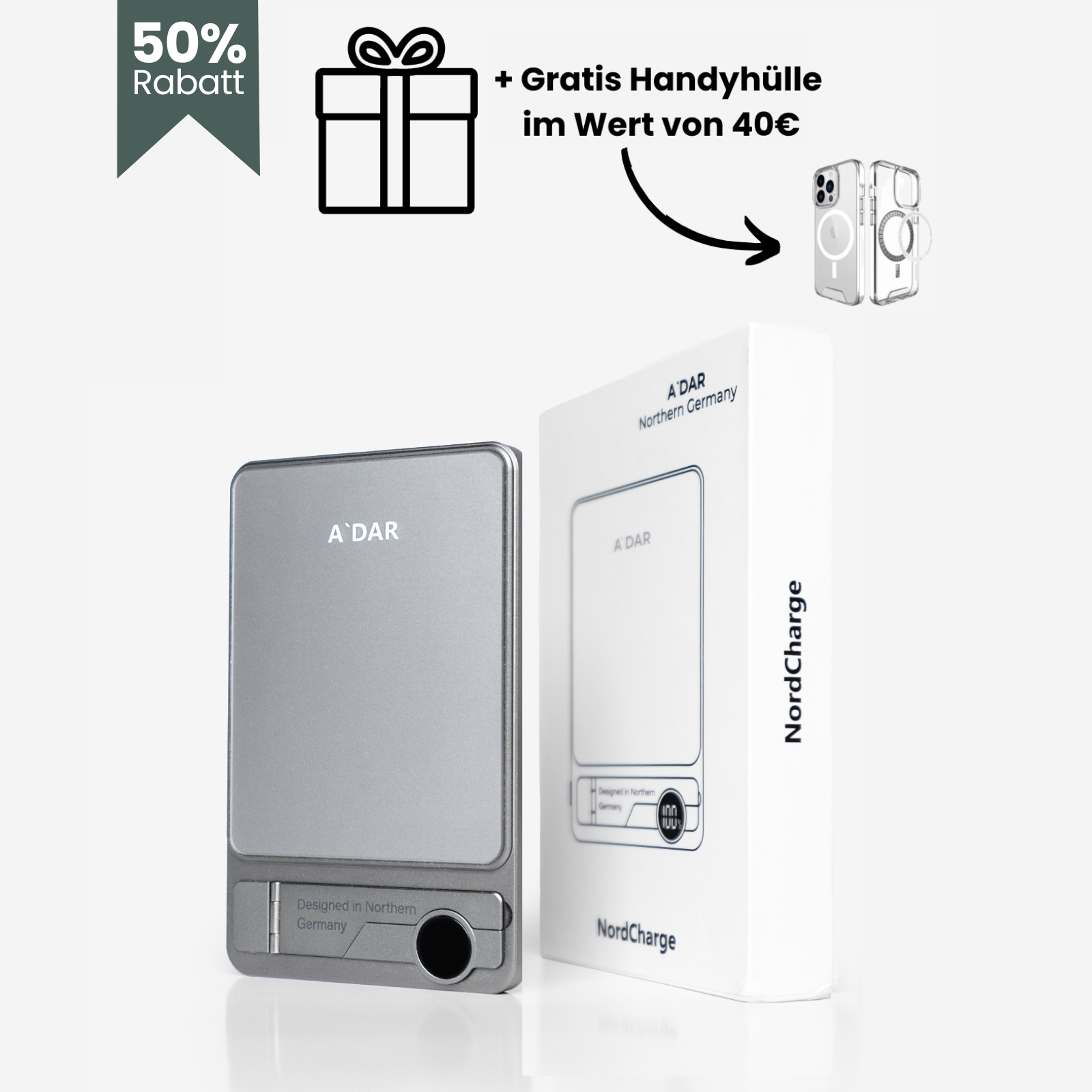 Die 8 mm dünne NordCharge verschwindet in jeder Tasche – und ist sofort da, wenn dein Akku schlappmacht.
